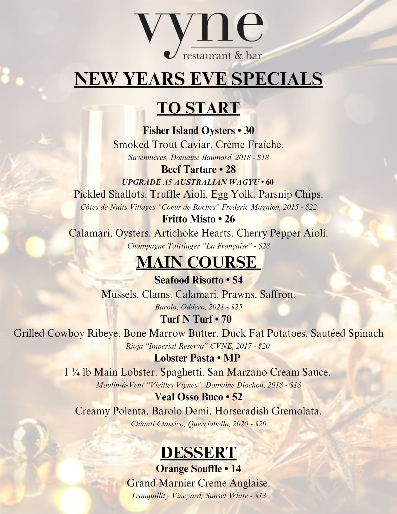 Vyne is a place where food is exquisite, and the people are unforgettable. It’s a space of casual elegance with timeless luxury and a special energy creating unforgettable memories and lifelong connections. A place where friends become family, and every meal is savory and tells a story.